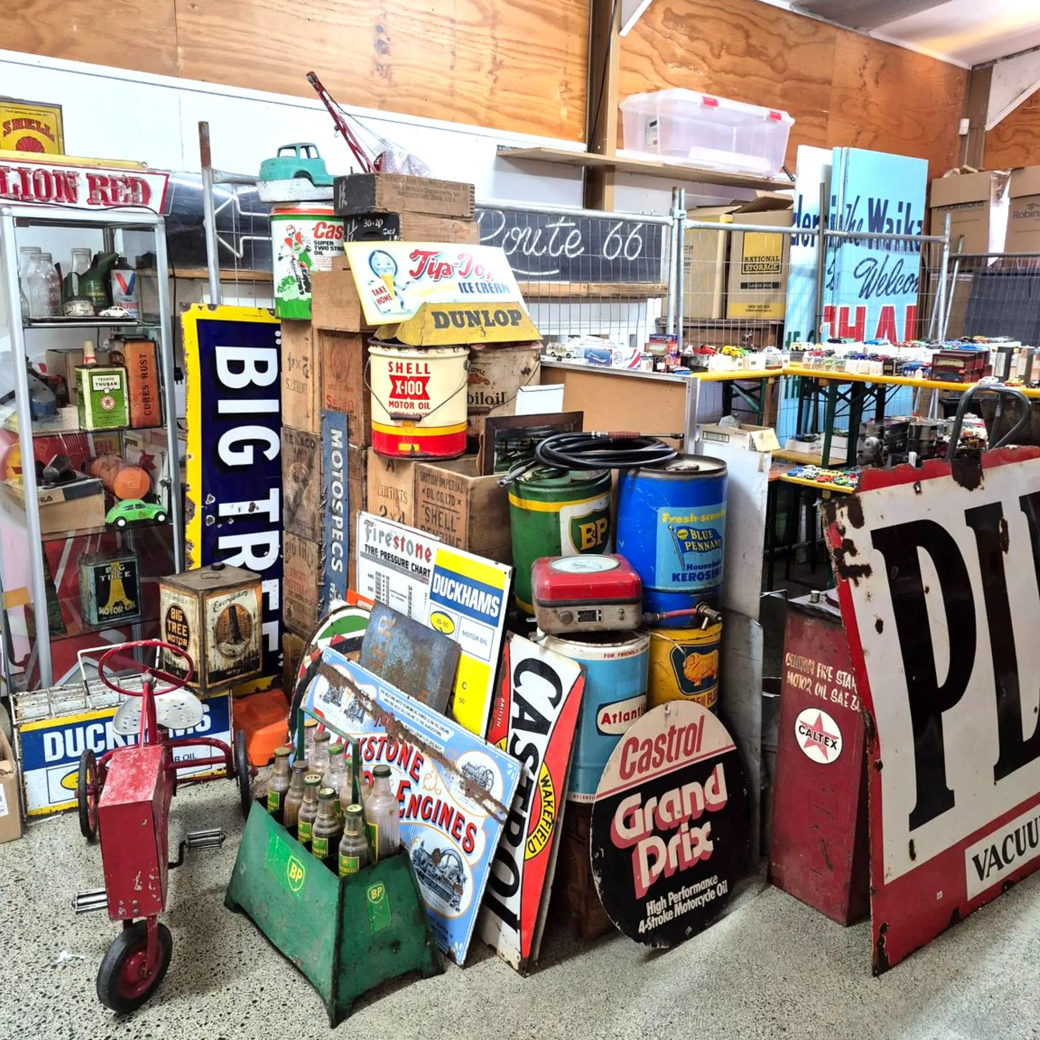 This sale is headlined by three exceptional rarities: a highly sought-after EARLY 4-gallon "Big Tree Motor Oil" tin, a rare Blackstones Engine Oils (Christchurch) enamel sign, and a genuine Sinclair quart oil bottle. The collection boasts six massive 6'x3' enamel signs from iconic brands including Avon Tyres, Plume, Castrol, and Europa—true statement pieces for any display. You'll also find a fantastic array of other enamel signs from Big Tree, Europa, Castrol, Sternol, and Texaco ect. Beyond signs, the lot is packed with authentic vintage equipment and memorabilia: Oil boxes and distinctive Hi-Boy oil pumps. A diverse assortment of oil tins from major brands like Big Tree Motor Oil, Veedol, Shell, and Europa. A large and impressive collection of EARLY petrol-related hat badges and pins. Unique display items like a vibrant Lion Red neon sign, a Lion Brown tin sign, a Pepsi thermometer, a Big Tree mirror, and a period-correct tyre air pump. A vintage breath tester and various oil bottles, bottle tops, and tin signs. This is a major, ready-to-display multi vendor auction filled with colour, history, and nostalgia. Don't miss this rare chance to acquire a significant piece of petroliana, featuring top-tier rarities alongside a deep well of classic collectables.